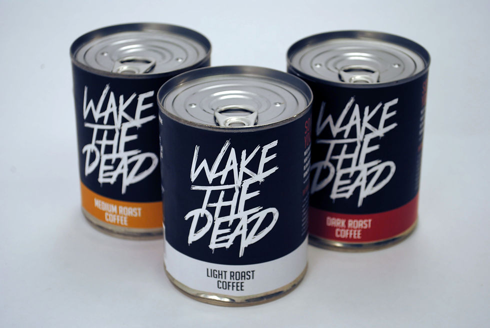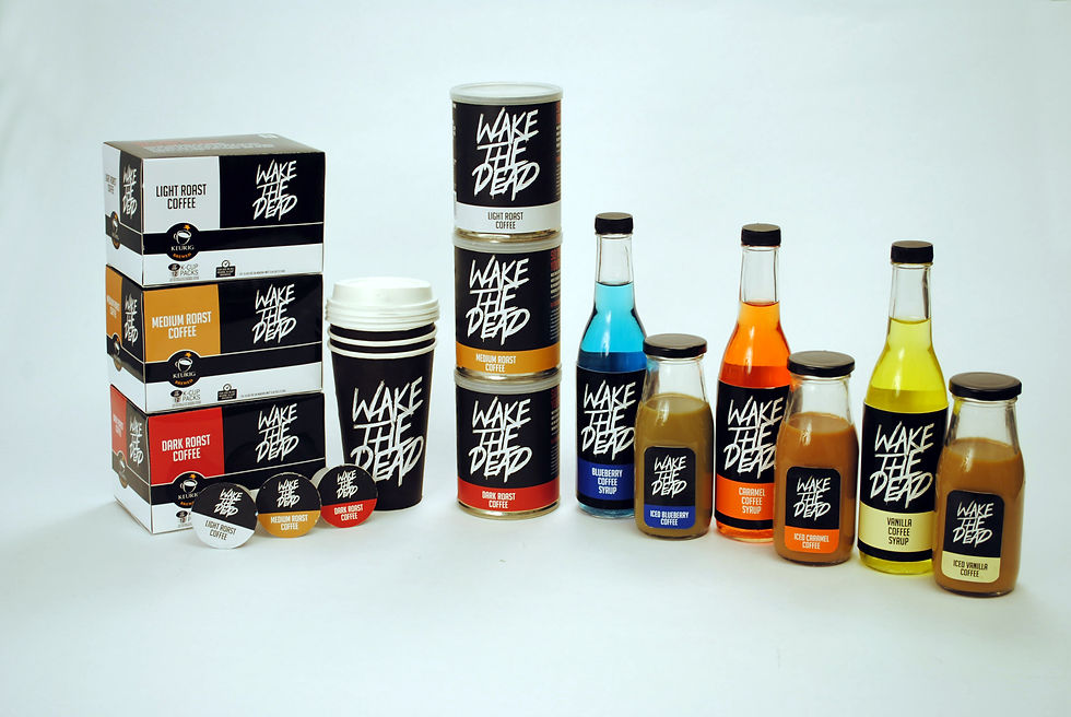 This is a package and identity for the product Wake the dead. This product is geared towards fans of the walking dead with out directly referencing it. With a play on colors and flavors, this series of packages for this indentity is brought all together.